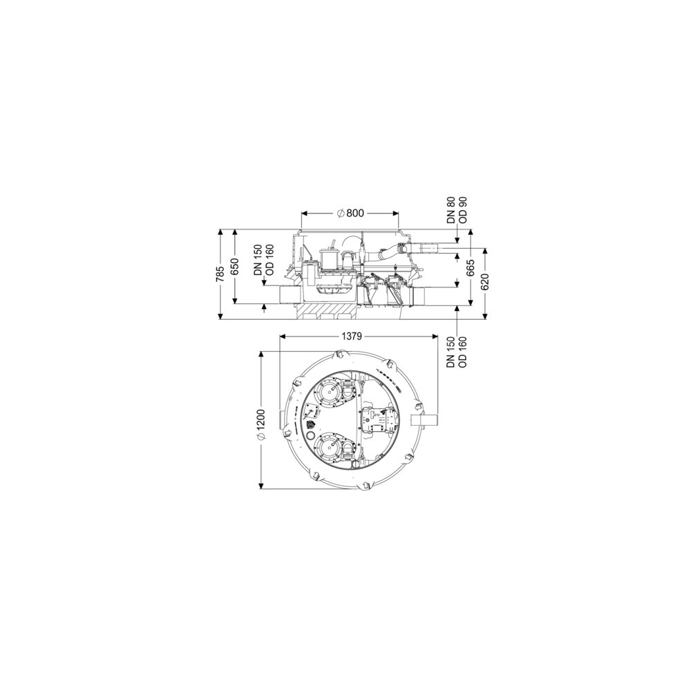 KESSEL Przepompownia przeciw. Ecolift XL, ścieków Ścieki bez fekaliów, zabudowa w ziemi, urządzenie dwupompowe, z 2 SPF 4500 pomp zatapialnych, typ pracy S1, czujnik alarmu z Sonda optyczna, sterownik Comfort Plus, Wariant z najniższą zabudową
