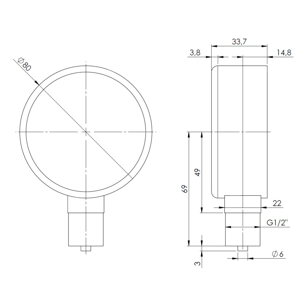 Ciśnieniomierz różnicowy AFRISO KP D201 -1000/0 mbar mosiądz G1/2B radialne fi 80, kl. 1.6%
