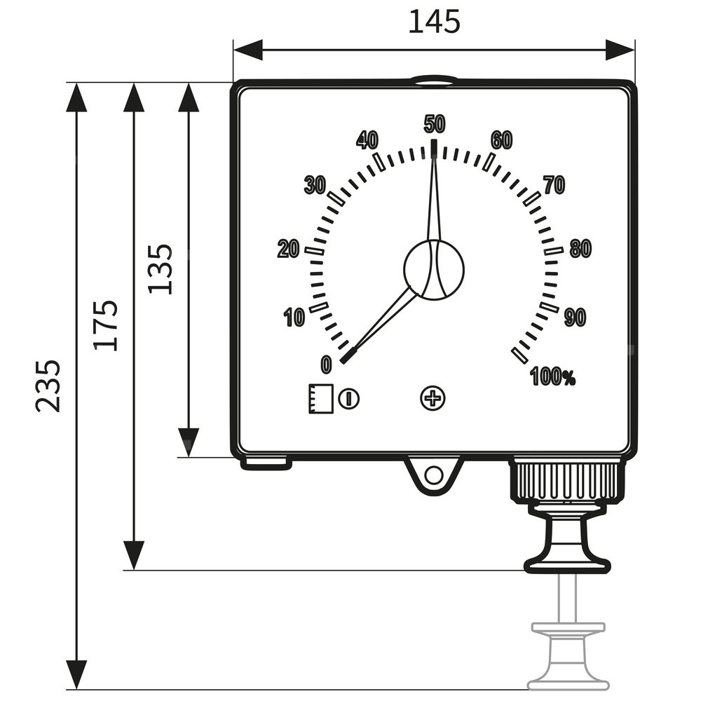 Czujnik pneumatyczny poziomu cieczy AFRISO Unitel do wody, zakres 0-2,5 m (dokł. 3%), tworzywo sztuczne