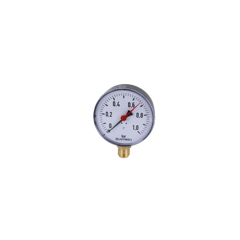 Manometr z rurką Bourdona AFRISO RF grzewczy 0/1 bar G1/2B radialne fi 100 mm, kl. 1.6%