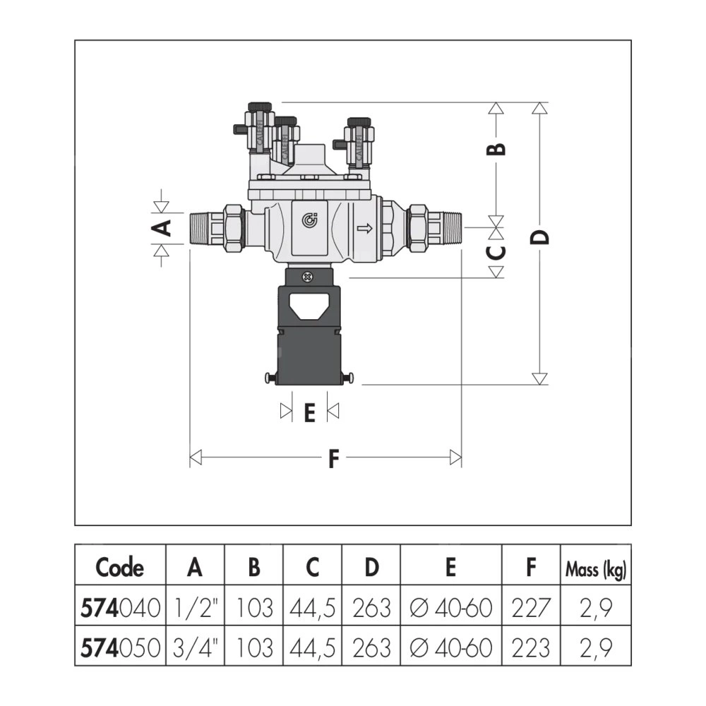 Przed izolatorem przepływów zwrotnych należy zamontować filtr siatkowy serii 577.