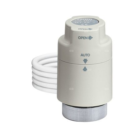 Siłownik termoelektryczny z ręcznym otwarciem i wskaźnikiem pozycji otwarcia Z mikroprzełącznikiem pomocniczym Normalnie zamknięte. Dla zaworów z serii 338, 339, 401, 402, 425, 426, 421, 422, 230, 231, 232, 233, 234, 237, 220, 221, 222, 223, 224, 225, 226, 227, 455 i 456. Zakres temperatury otoczenia: 0–50 °C. Zasilanie elektryczne: 230 V (AC). Pobór mocy: 3 W. Stopień ochrony: IP 40. Długość przewodu zasilająego: 0,8 m. Styk mikroprzełącznika pomocniczego (230 V): 0,8 A. Prąd rozruchowy: ≤ 1 A.