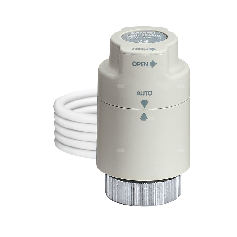 Siłownik termoelektryczny z ręcznym otwarciem i wskaźnikiem pozycji otwarcia Z mikroprzełącznikiem pomocniczym Normalnie zamknięte. Dla zaworów z serii 338, 339, 401, 402, 425, 426, 421, 422, 230, 231, 232, 233, 234, 237, 220, 221, 222, 223, 224, 225, 226, 227, 455 i 456. Zakres temperatury otoczenia: 0–50 °C. Zasilanie elektryczne: 24 V (AC) / (DC). Pobór mocy: 3 W. Stopień ochrony: IP 40. Długość przewodu zasilająego: 0,8 m. Styk mikroprzełącznika pomocniczego (230 V): 0,8 A. Prąd rozruchowy: ≤ 1 A.