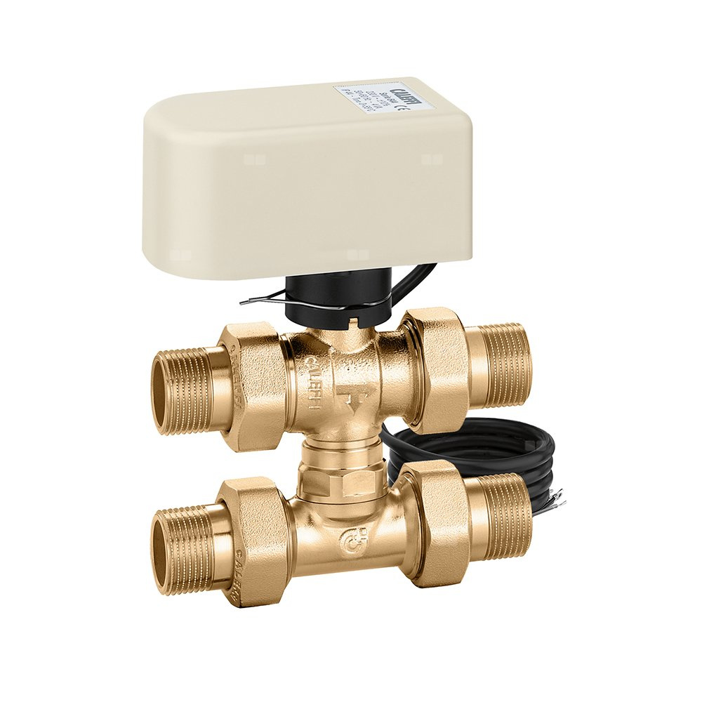 Trójdrożny kulowy zawór strefowy z trójnikiem obejściowym, z napędem 1"-24V