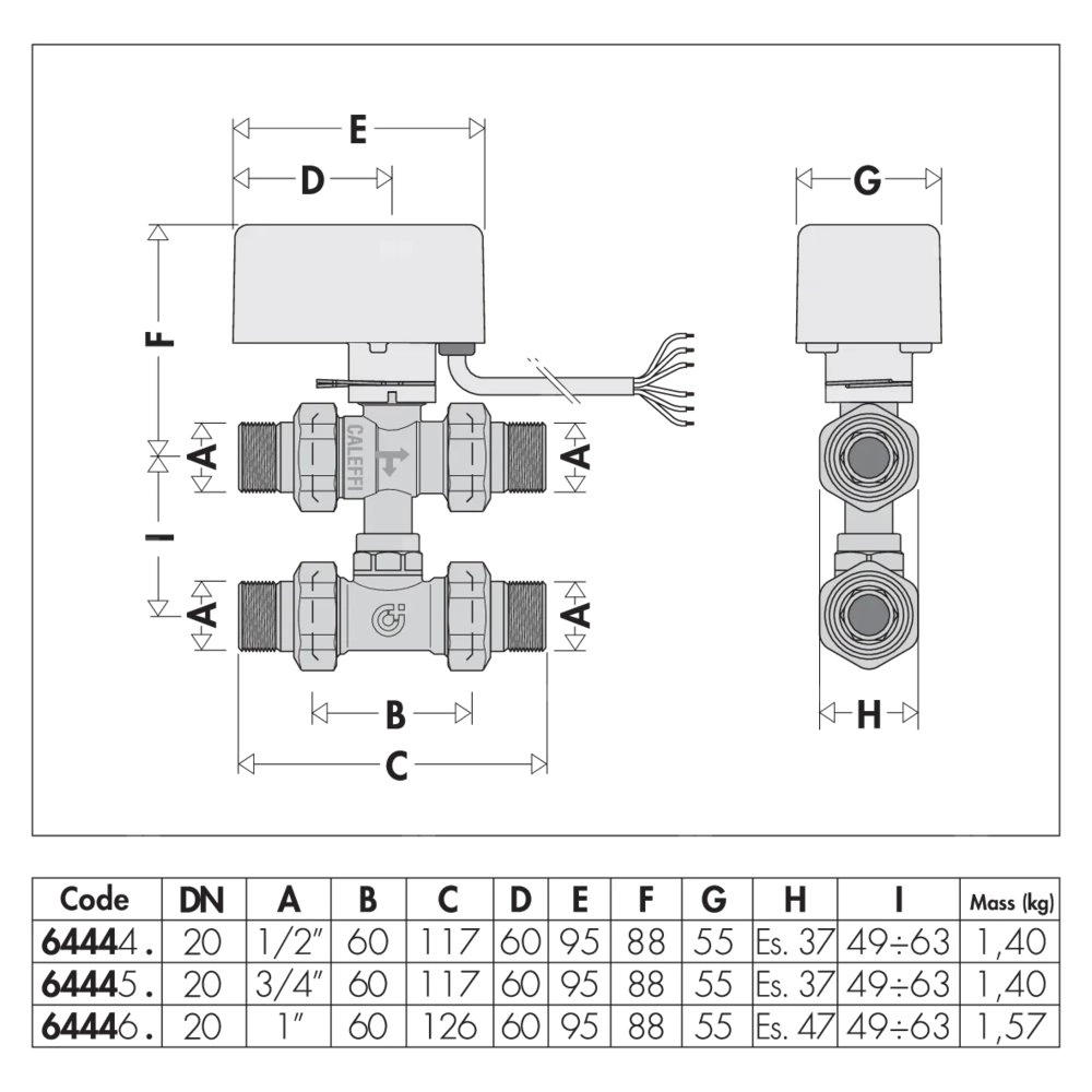 Trójdrożny kulowy zawór strefowy z trójnikiem obejściowym, z napędem 3/4"-230V