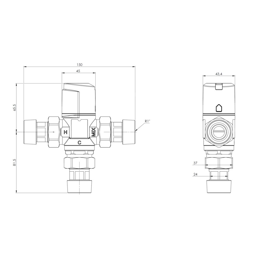 Pod pokrywką chroniącą przed przypadkową zmianą nastawy umieszczono pokrętło do ustawienia temperatury wody zmieszanej.