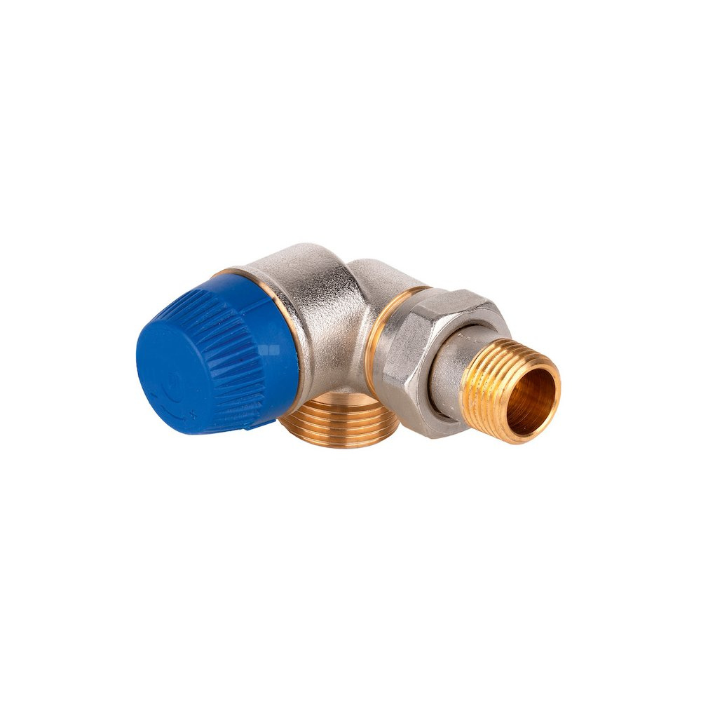Zawór termostatyczny Kombi-TRV z dynamiczną regulacją, niezależny od cisnienia, narożny lewy, wkładka PI, R1/2" grzejnik/ G3/4" instalacja