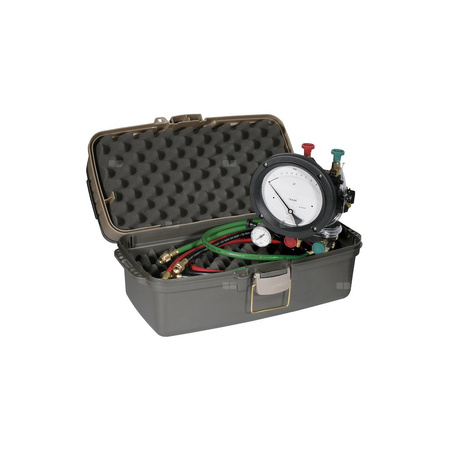 Urządzenie do pomiaru ciśnienia z analogowym wskaźnikiem różnicy ciśnień. W zestawie z futerałem i akcesoriami; do serwisu zaworów serii BA