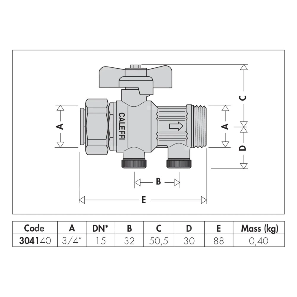 Zawór kulowy z wbudowanym, certyfikowanym zaworem antyskażeniowym. Z możliwością nadzoru. Przyłącze: G 3/4" (ISO 228-1) GW, wlot. Przyłącze: G 3/4" A (ISO 228-1) GZ, wylot, nakrętka mocująca. Maksymalne ciśnienie pracy: 10 bar. Zakres temperatury medium: 0–65 °C. DN: DN 15 (zawór zwrotny). Materiał: mosiądz.