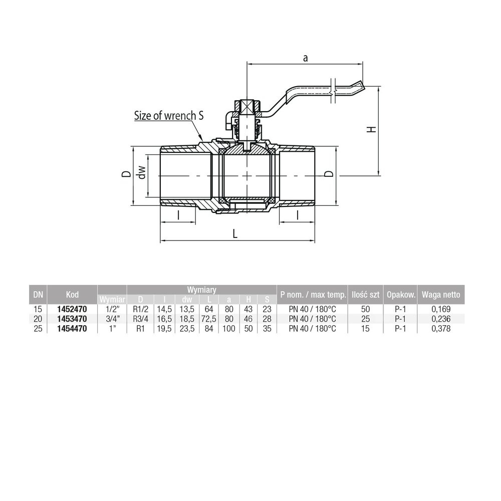 - Ciśnienie nominalne PN 40