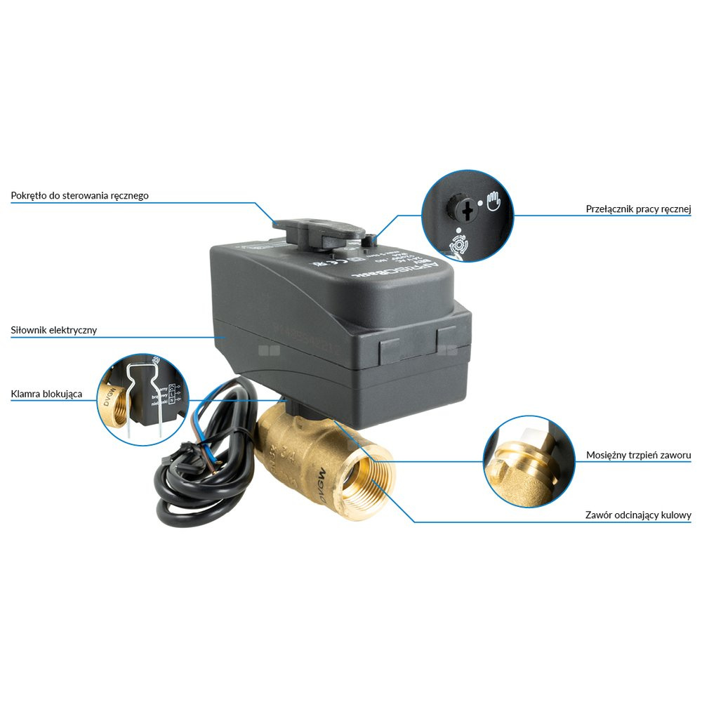 Siłownik sterowany sygnałem 2-punktowym (SPST) z możliwością pracy ręcznej.