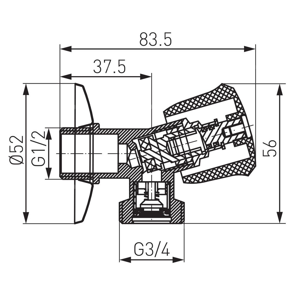 Wytrzymały korpus wykonany jest z mosiądzu CW617N, a jego powierzchnie wewnętrzne przystosowane są do wody pitnej. Zawór wyposażony jest w metalowy uchwyt oraz zawór zwrotny, a jego głowica grzybkowa umożliwia regulację przepływu.