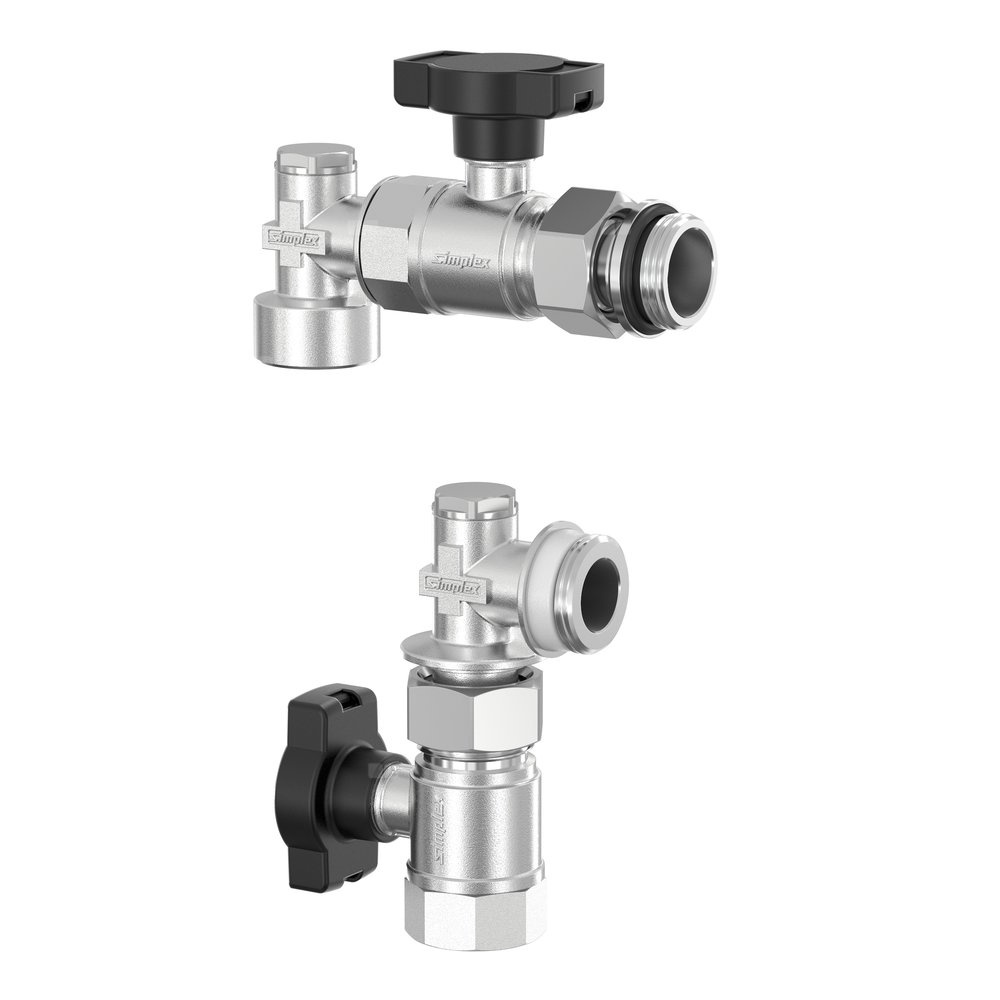 Zestaw dedykowany do rozdzielacza Inox skłąda się z dwóch zaworów kulowych z prostym przyłączem gwintowanym z uszczelką O-ring, uchywami typu T i możliwością zastosowania w nich termometrów oraz 2 x kolano 90° z gwintem samouszczelniającym do pionowego montażu przewodów zasilających rozdzielacza.