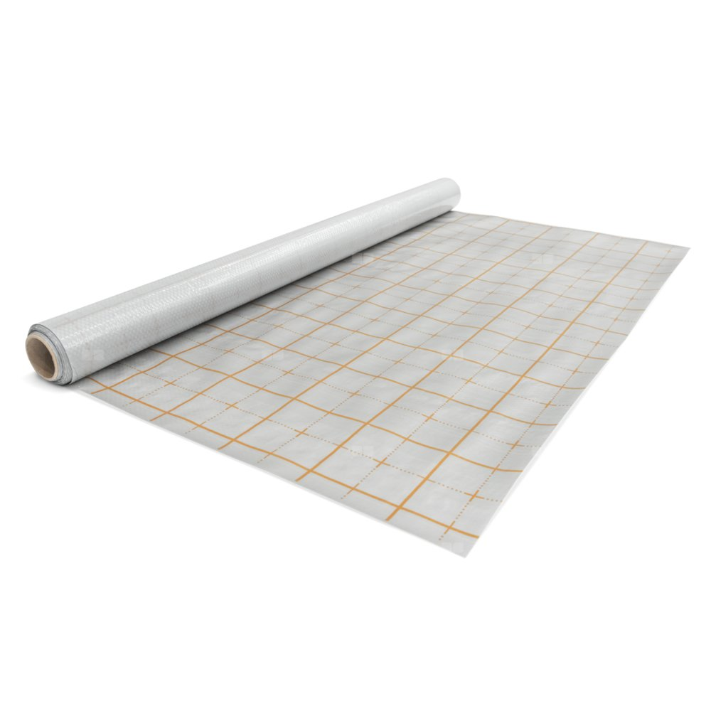 - Na wierzchniej stronie tkaniny wykonany jest nadruk w postaci linii ciągłych tworzących kratę o boku 10cm, oraz przerywanych tworzących kratę o boku 5cm, ułatwiających prawidłowe rozłożenie na niej rur grzewczych.