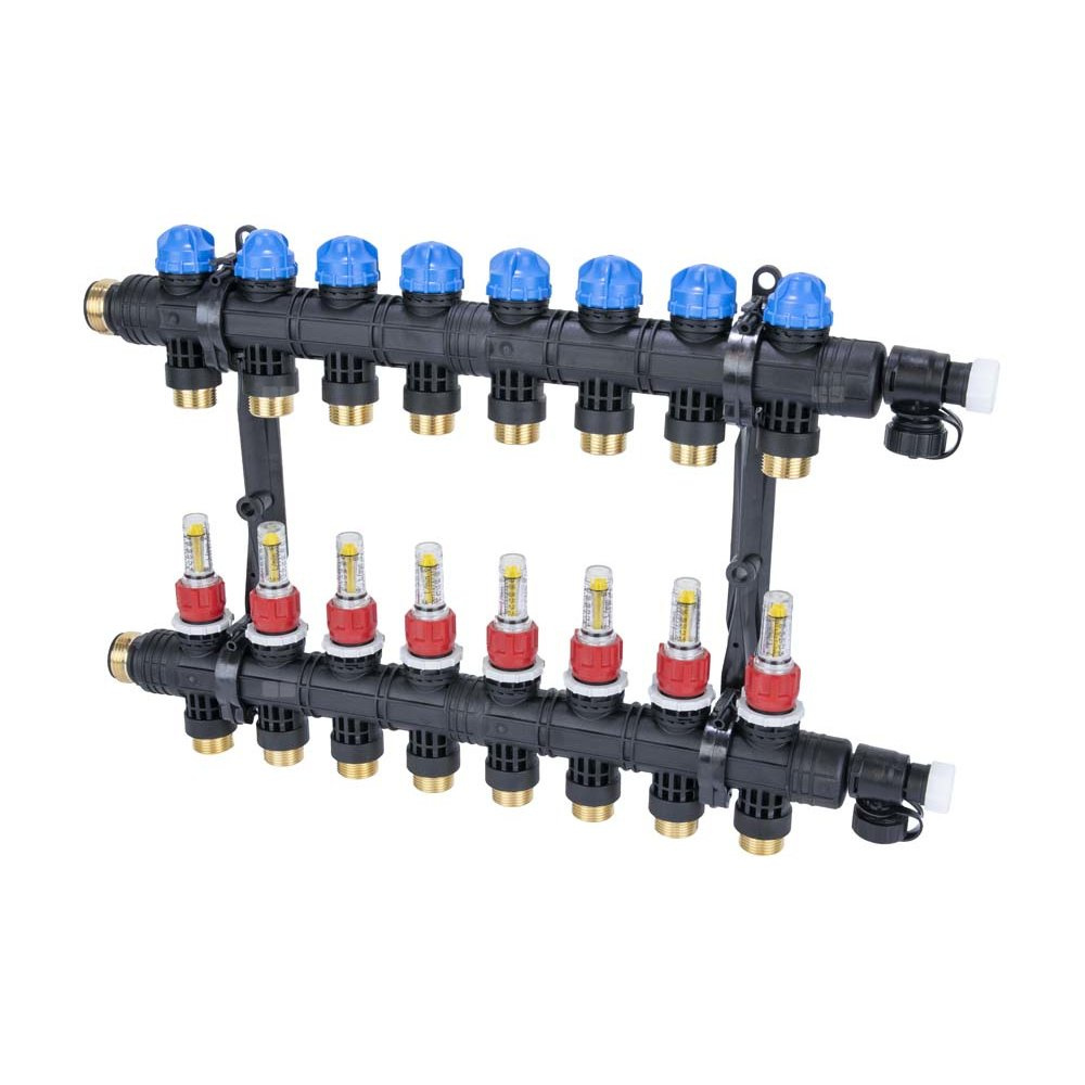 Rozdzielacz do ogrzewania podłogowego AFRISO ProCalida EF1 K 8-obieg. poliamid GZ 1'' x euroconus 3/4'' + przepływomierz + zawór napełn/spust