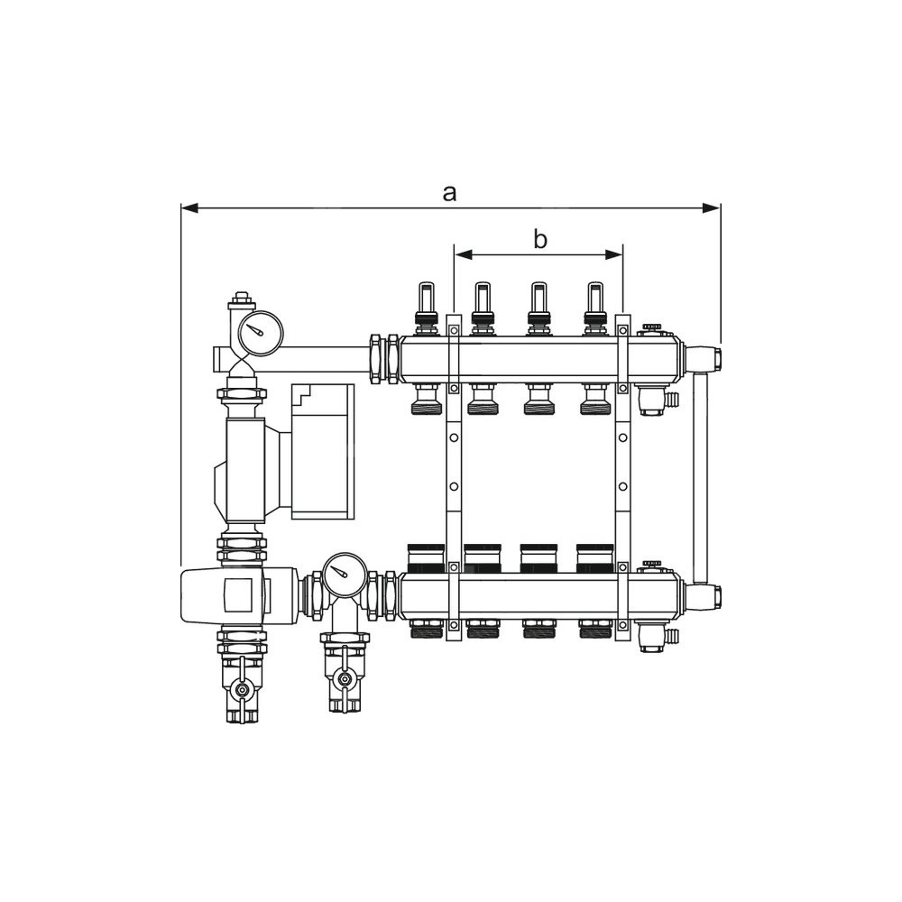 TECEfloor rozdzielacz ogrzewania podłogowego zintegrowany z termostatycznym zaworem trójdrogowym i mieszaczem pompowym (pompa elektroniczna)