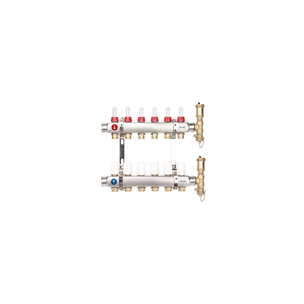 Rozdzielacz hydrauliczny VALVEX Base K5-12 stal nierdzewna 1'', odgałęzień: 12 (3/4'') + zawory termostatyczne + przepływomierze