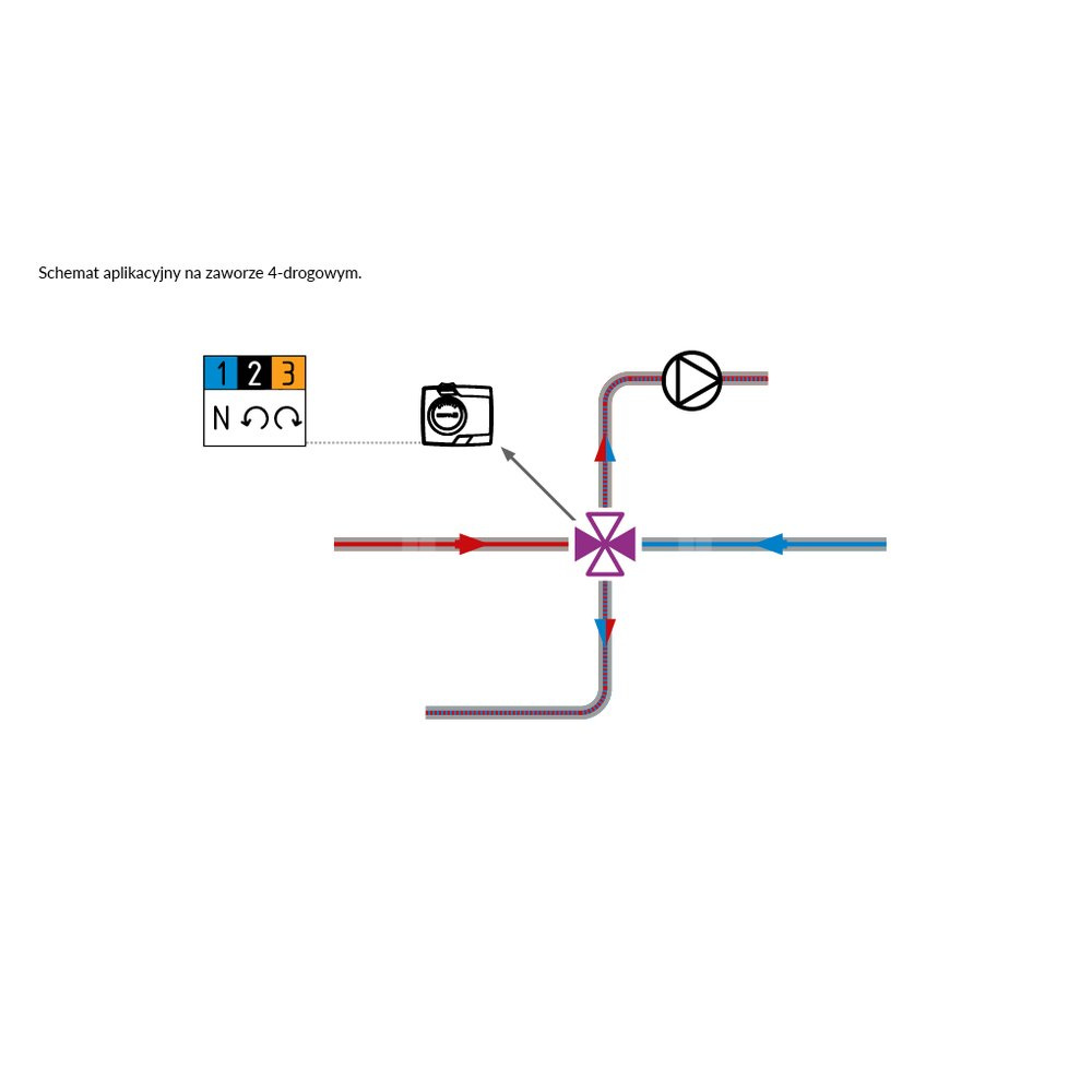 Stosowany w instalacjach grzewczych i chłodzących.Montowany na 3 i 4-drogowych obrotowych zaworach mieszających.