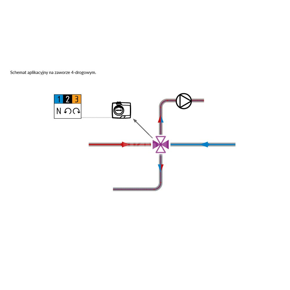 Stosowany w instalacjach grzewczych i chłodzących.Montowany na 3 i 4-drogowych obrotowych zaworach mieszających.