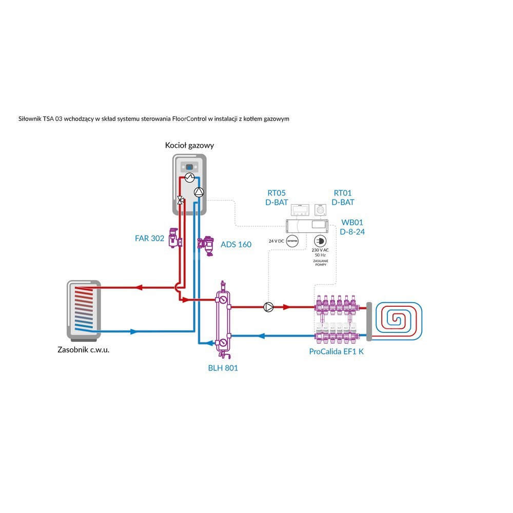 Połączony z listwą systemu sterowania instalacją płaszczyznową (np. FloorControl, CosiTherm) umożliwia ustawienie różnych temperatur w każdej ze stref.
