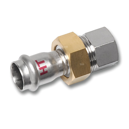 Śrubunek SANHA NiroSan Press Industry z uszczelką i nakrętką z mosiądzu trzyczęściowy, stal nierdzewna, 28 mm x 3/4'' (zw x GW)