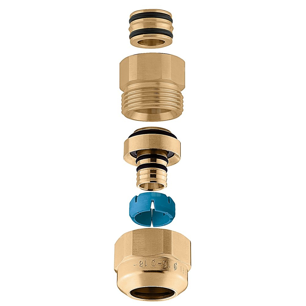 Złączka zaciskowa z samodopasowujacą średnicą do jednowarstwowych i wielowarstwowych rur z tworzywa sztucznego Zakres temperatury pracy: 5÷80°C (PE-X), 5÷75°C (wielowarstwowa 95°C). Przyłącze: 23 p.1,5, Podłączenie do złączek Caleffi. Przyłącze: Øwewnętrzna 14,5–15, Øzewnętrzna 18–20. Maksymalne ciśnienie pracy: 10 bar.