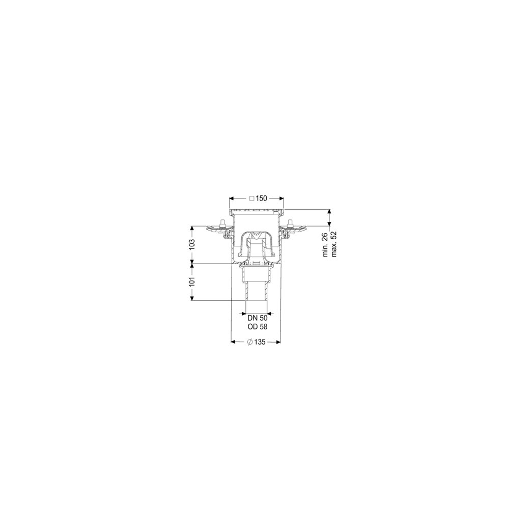 KESSEL Wpust obiek. Ecoguss doc.koł.usz., wielkość nominalna (DN) 50, dł. pokrywy 138 mm, króciec pionowy, syfonem w zestawie, odwodnienie przez odpływ punktowy, maks. wys. posadzki 25 mm, typ pokrywy Kratka szczelinowa, z regulowaną wysokością
