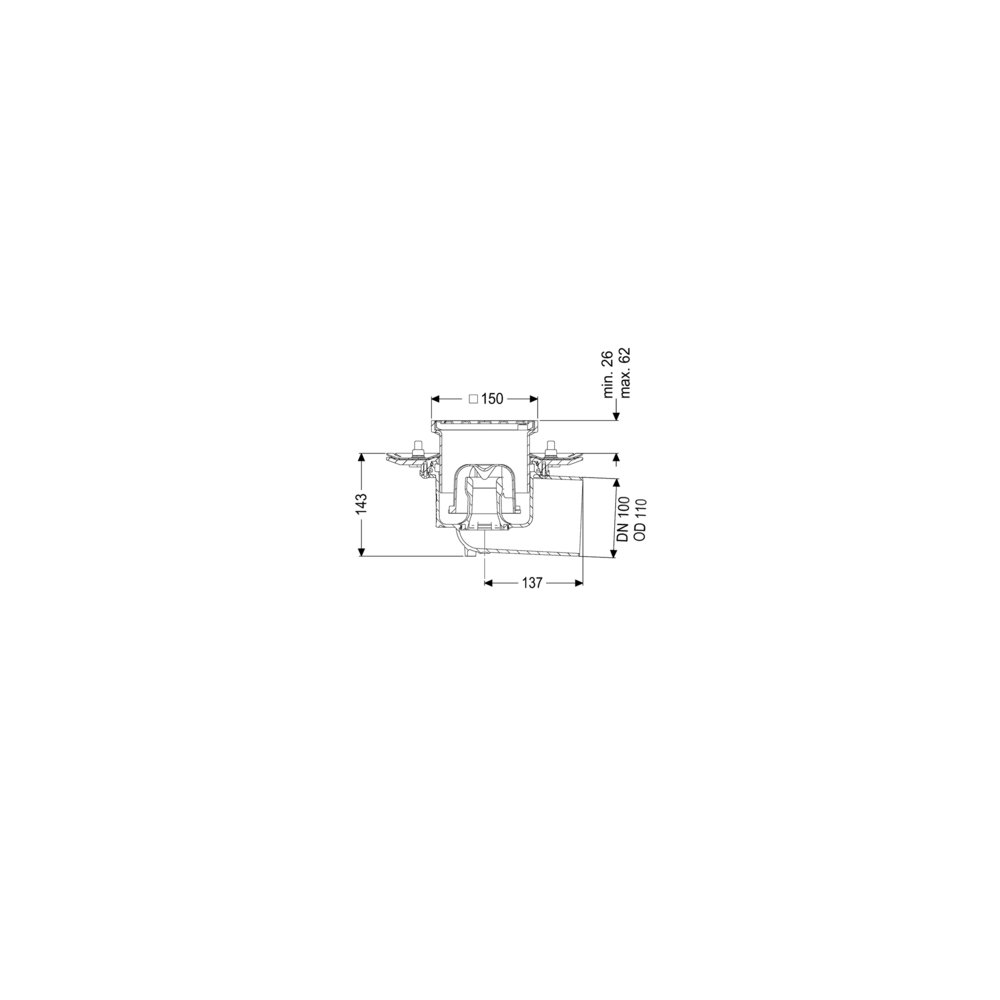 KESSEL Wpust obiek. Ecoguss doc.koł.usz., wielkość nominalna (DN) 100, dł. pokrywy 138 mm, króciec boczny, syfonem w zestawie, odwodnienie przez odpływ punktowy, maks. wys. posadzki 25 mm, typ pokrywy Kratka szczelinowa, z regulowaną wysokością