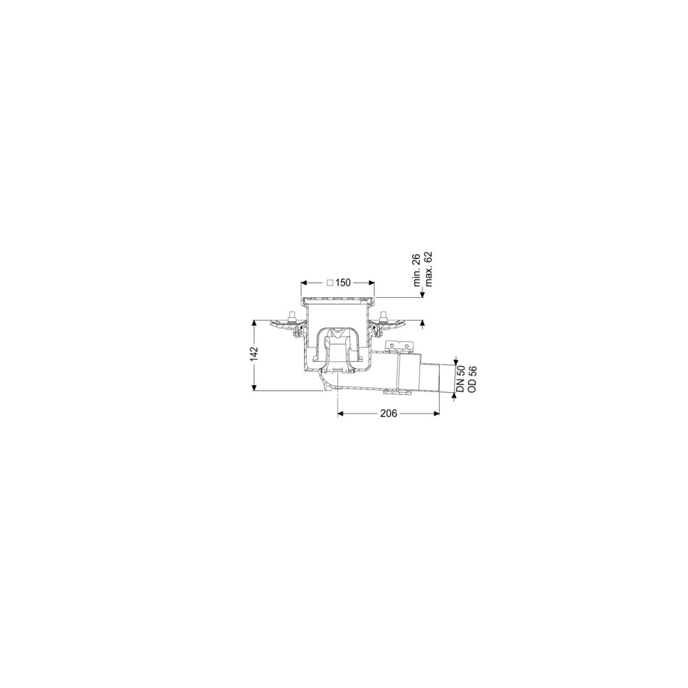 KESSEL Wpust obiek. Ecoguss doc.koł.usz., wielkość nominalna (DN) 50, dł. pokrywy 138 mm, króciec boczny, syfonem w zestawie, odwodnienie przez odpływ punktowy, maks. wys. posadzki 25 mm, typ pokrywy Kratka szczelinowa, z regulowaną wysokością