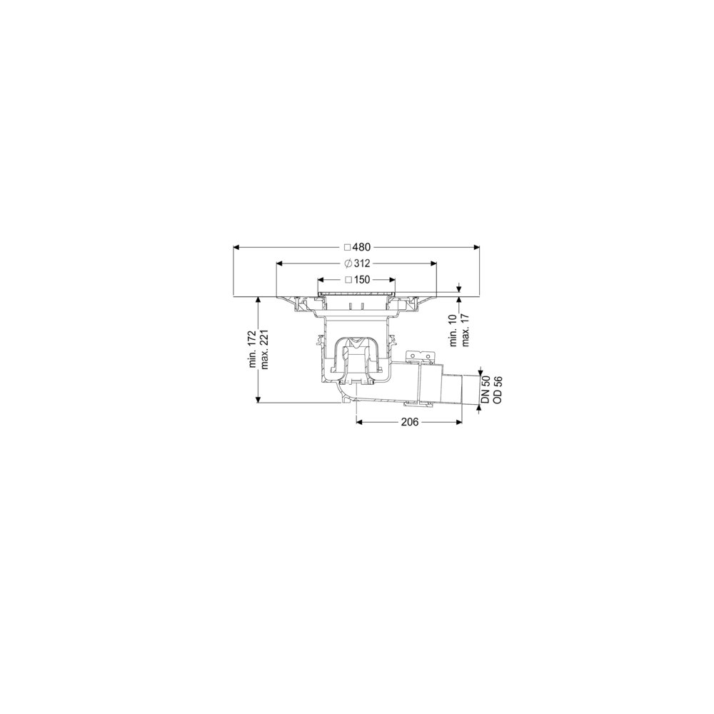 KESSEL Wpust obiektowy Ecoguss, wielkość nominalna (DN) 50, króciec boczny, typ pokrywy Kratka szczelinowa, syfonem w zestawie, regulowany w trzech wymiarach, maks. wys. posadzki 17 mm, zamknięcie przykręcony