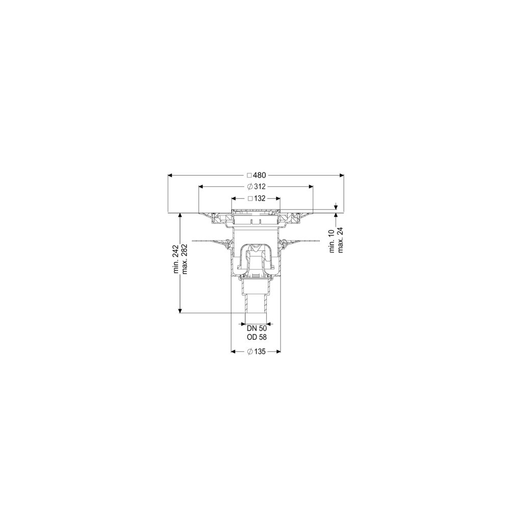 KESSEL Wpust obiektowy Ecoguss kołnier., wielkość nominalna (DN) 50, króciec pionowy, odwodnienie przez odpływ punktowy, syfonem w zestawie, maks. wys. posadzki 24 mm, typ pokrywy Kratka design, regulowany w trzech wymiarach