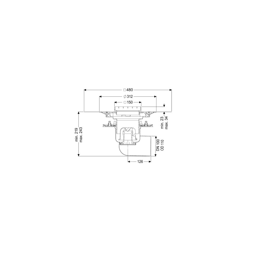 KESSEL Wpust pod. Ferrofix doc.koł.usz., wielkość nominalna (DN) 100, System 125, króciec boczny, materiał nasady ABS, regulowany w trzech wymiarach, typ pokrywy Ruszt kratowy, wymiar zewnętrzny (DZ) 110 mm