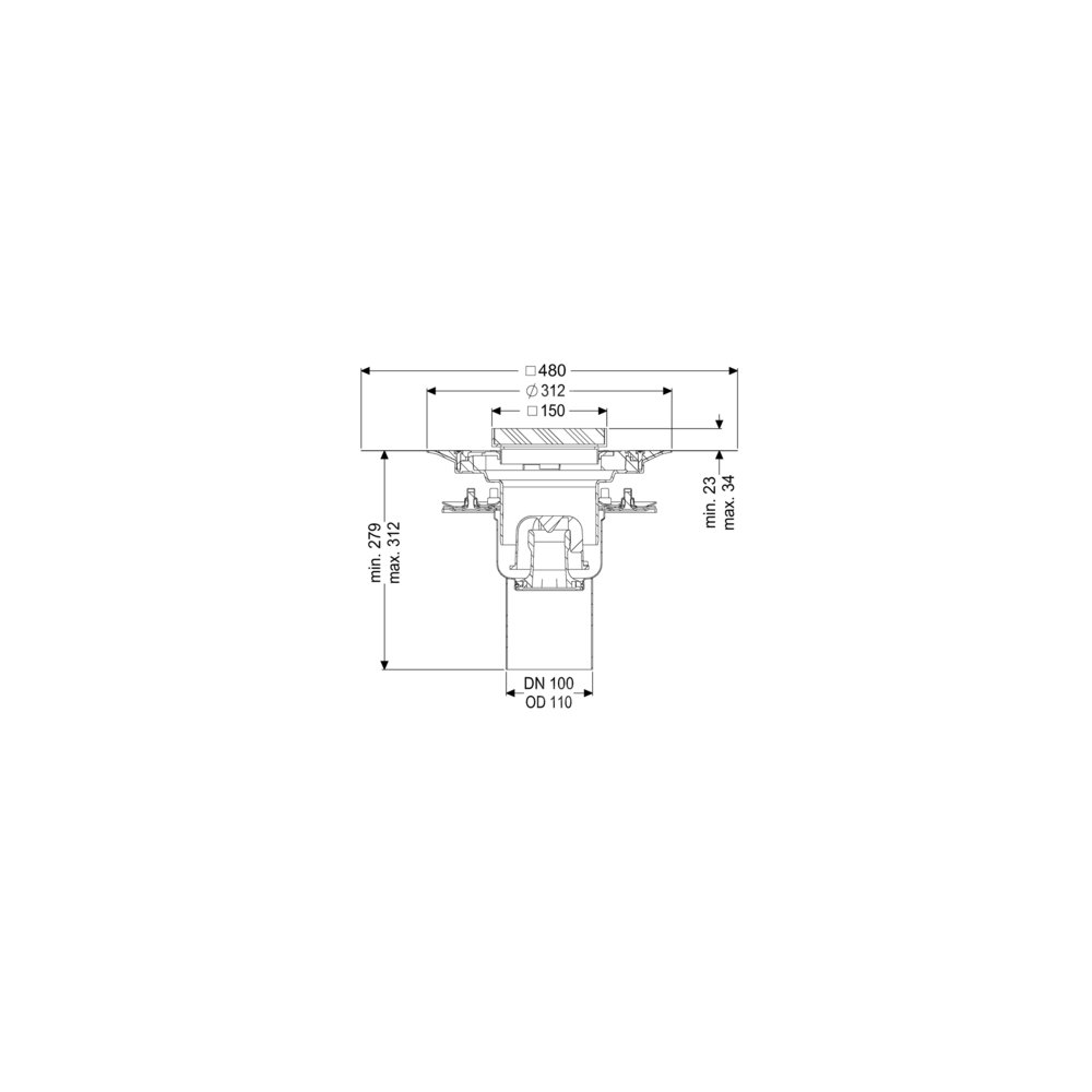 KESSEL W. pod. Ferrofix doc.koł.usz., wielkość nominalna (DN) 100, System 125, króciec pionowy, materiał nasady ABS, regulowany w trzech wymiarach, typ pokrywy Ruszt kratowy, wymiar zewnętrzny (DZ) 110 mm