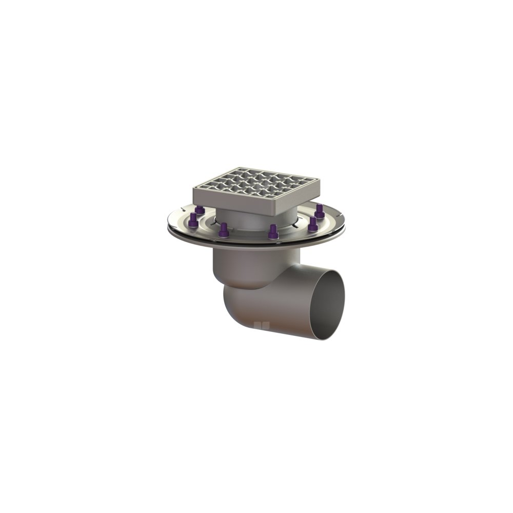 Wpust pod. Ferrofix doc.koł.usz. DN 100, boczny, Kratka, Stal nierdzewna