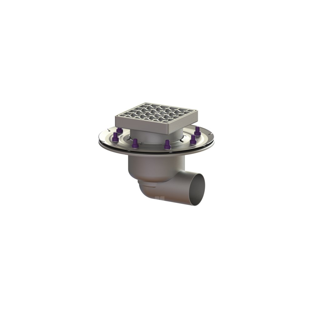 Wpust Ferrofix DN70, odpł.boczny, z nasadką / rusztem kratowym 138x138 ze stali nierdzewnej, sys.125