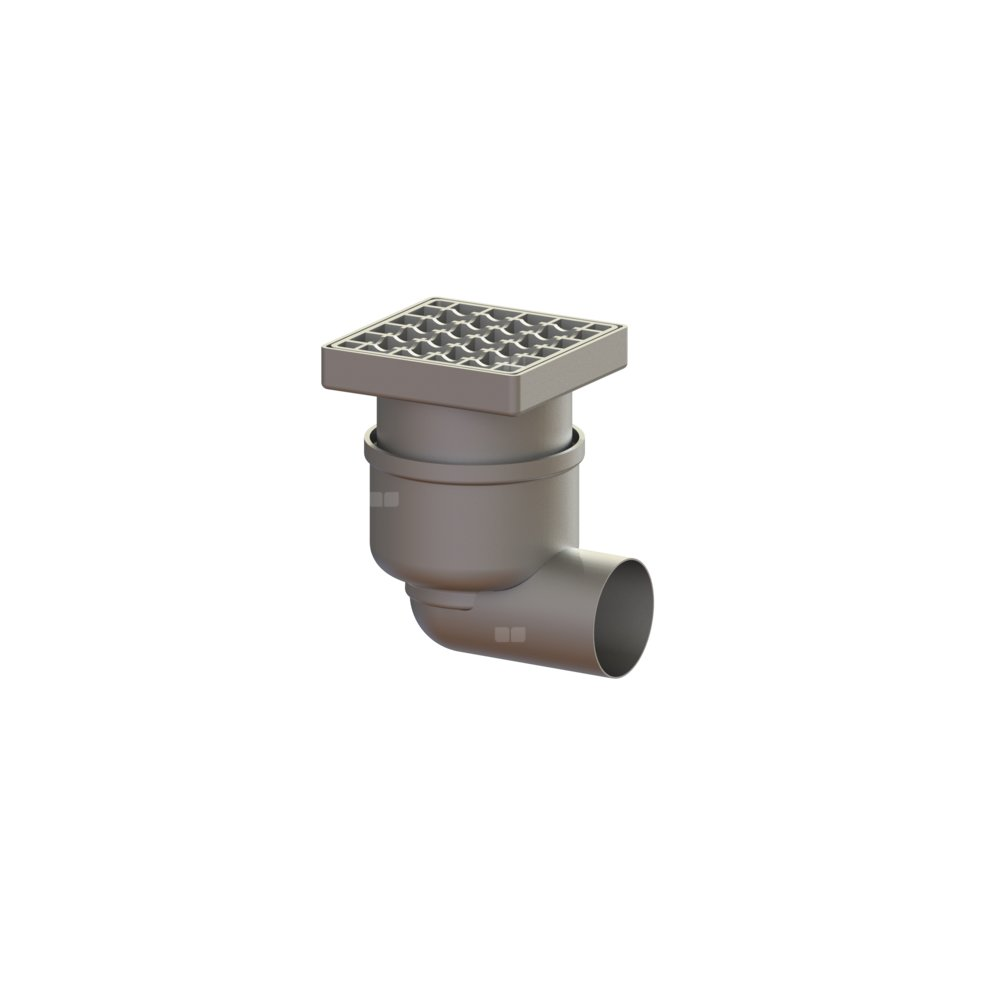 Wpust Ferrofix DN70, odpł. boczny, z nasadką / rusztem kratowym 138x138 ze stali nierdzewnej, sys.125