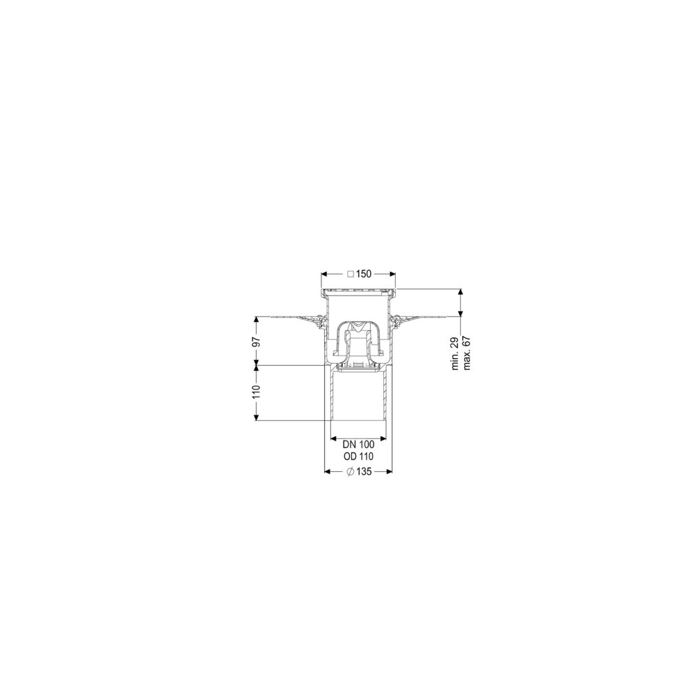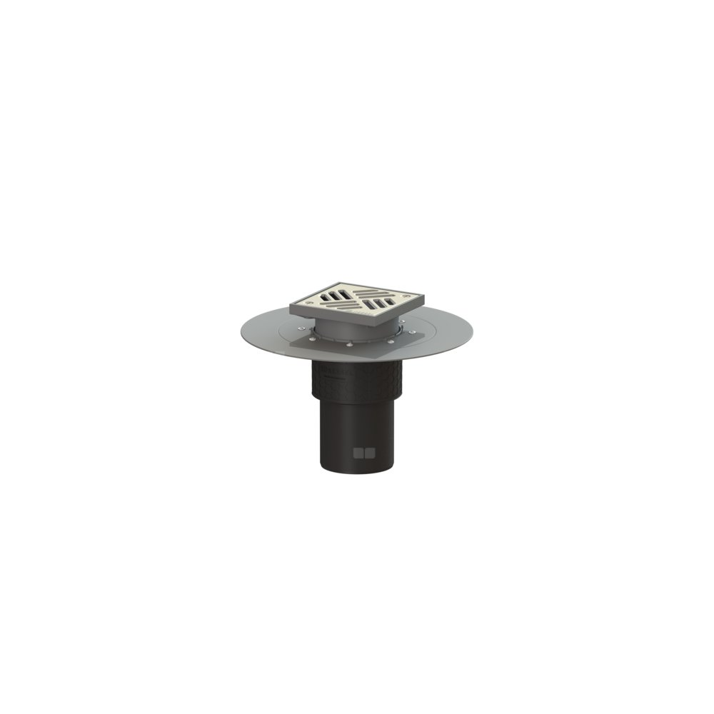 KESSEL Wpust obiektowy Ecoguss kołnier., wielkość nominalna (DN) 100, króciec pionowy, odwodnienie przez odpływ punktowy, syfonem w zestawie, maks. wys. posadzki 25 mm, typ pokrywy Kratka szczelinowa, z regulowaną wysokością