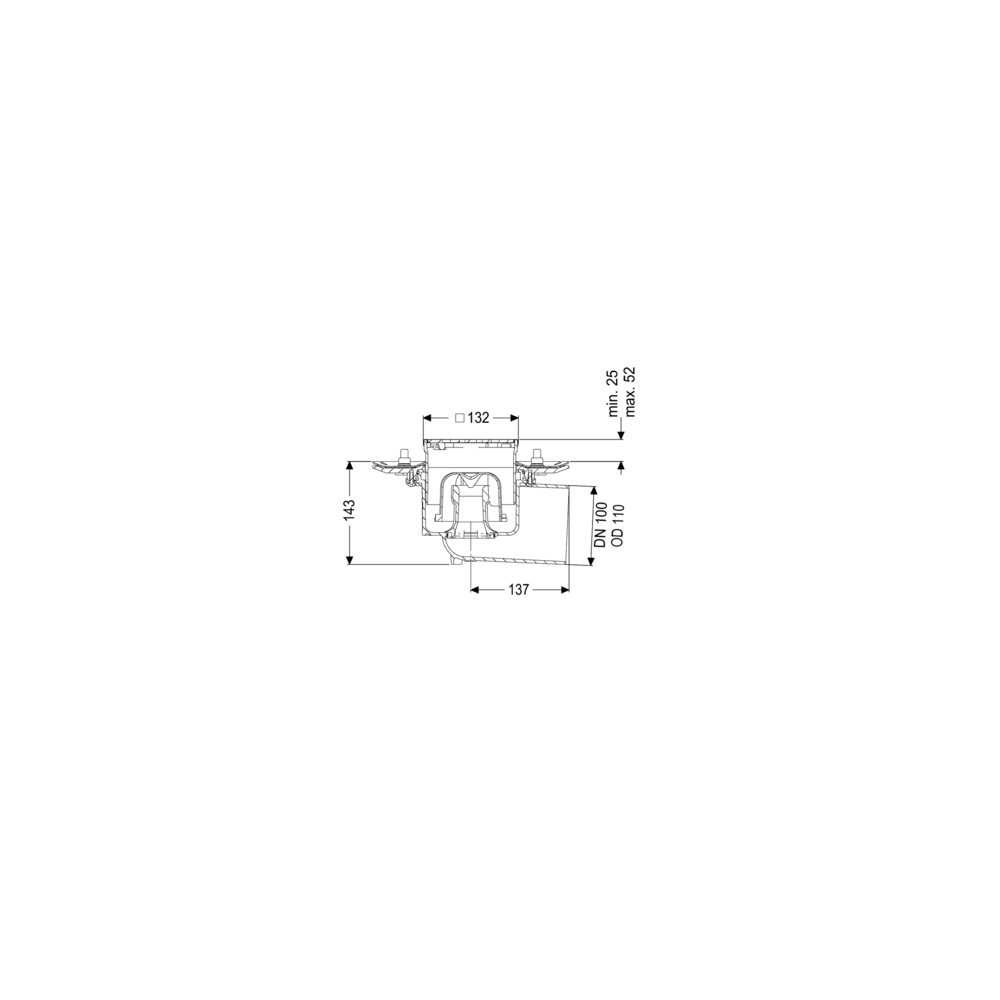 KESSEL Wpust obiek. Ecoguss doc.koł.usz., wielkość nominalna (DN) 100, dł. pokrywy 120 mm, króciec boczny, syfonem w zestawie, odwodnienie przez odpływ punktowy, maks. wys. posadzki 16 mm, typ pokrywy Kratka design, z regulowaną wysokością