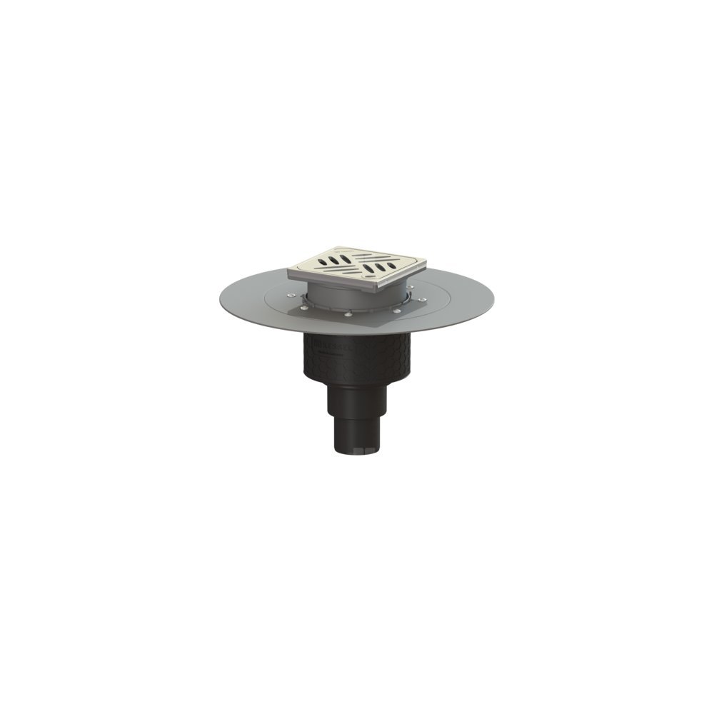 KESSEL Wpust obiektowy Ecoguss kołnier., wielkość nominalna (DN) 50, króciec pionowy, odwodnienie przez odpływ punktowy, syfonem w zestawie, maks. wys. posadzki 16 mm, typ pokrywy Kratka design, z regulowaną wysokością