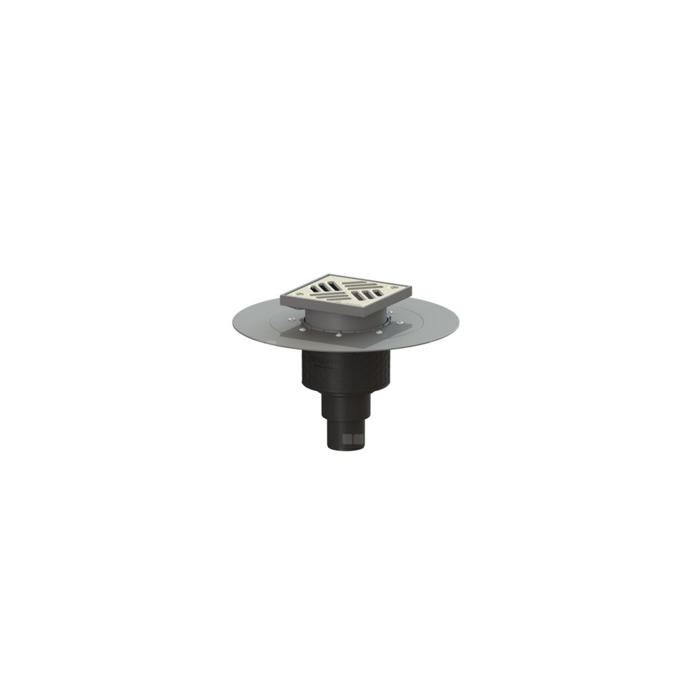 KESSEL Wpust obiektowy Ecoguss kołnier., wielkość nominalna (DN) 50, króciec pionowy, odwodnienie przez odpływ punktowy, syfonem w zestawie, maks. wys. posadzki 25 mm, typ pokrywy Kratka szczelinowa, z regulowaną wysokością