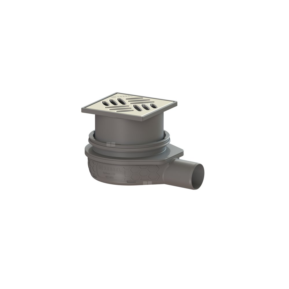Wpust KESSEL Ultraflat 79 z 1 przyłączem DN 50, odpływ poziomy (zdejmowany), kratka 120x120mm stal nierdzewna