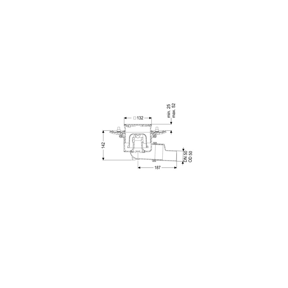 KESSEL Wpust obiek. Practicus doc.koł., dł. pokrywy 120 mm, króciec boczny, wielkość nominalna (DN) 50, syfonem w zestawie, typ pokrywy Kratka design, kratka design Kessel, uszczelnienie nasadzie przez Krawędź przyłączeniowa