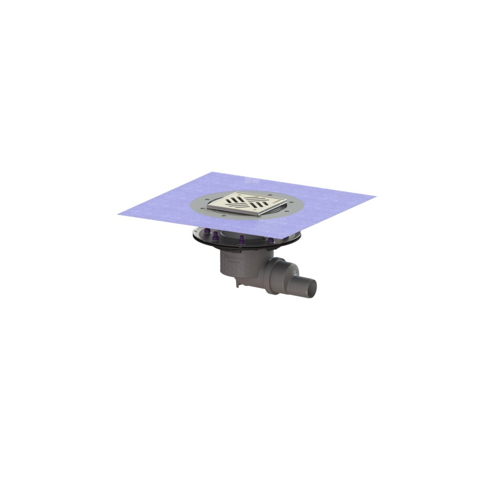 KESSEL Wpust obiek. Practicus doc.koł., dł. pokrywy 138 mm, króciec boczny, wielkość nominalna (DN) 50, syfonem w zestawie, typ pokrywy Kratka szczelinowa, kratka design Kessel, uszczelnienie nasadzie przez załączona mata uszczelniająca do przyklejenia (zmu) wg DIN 18534