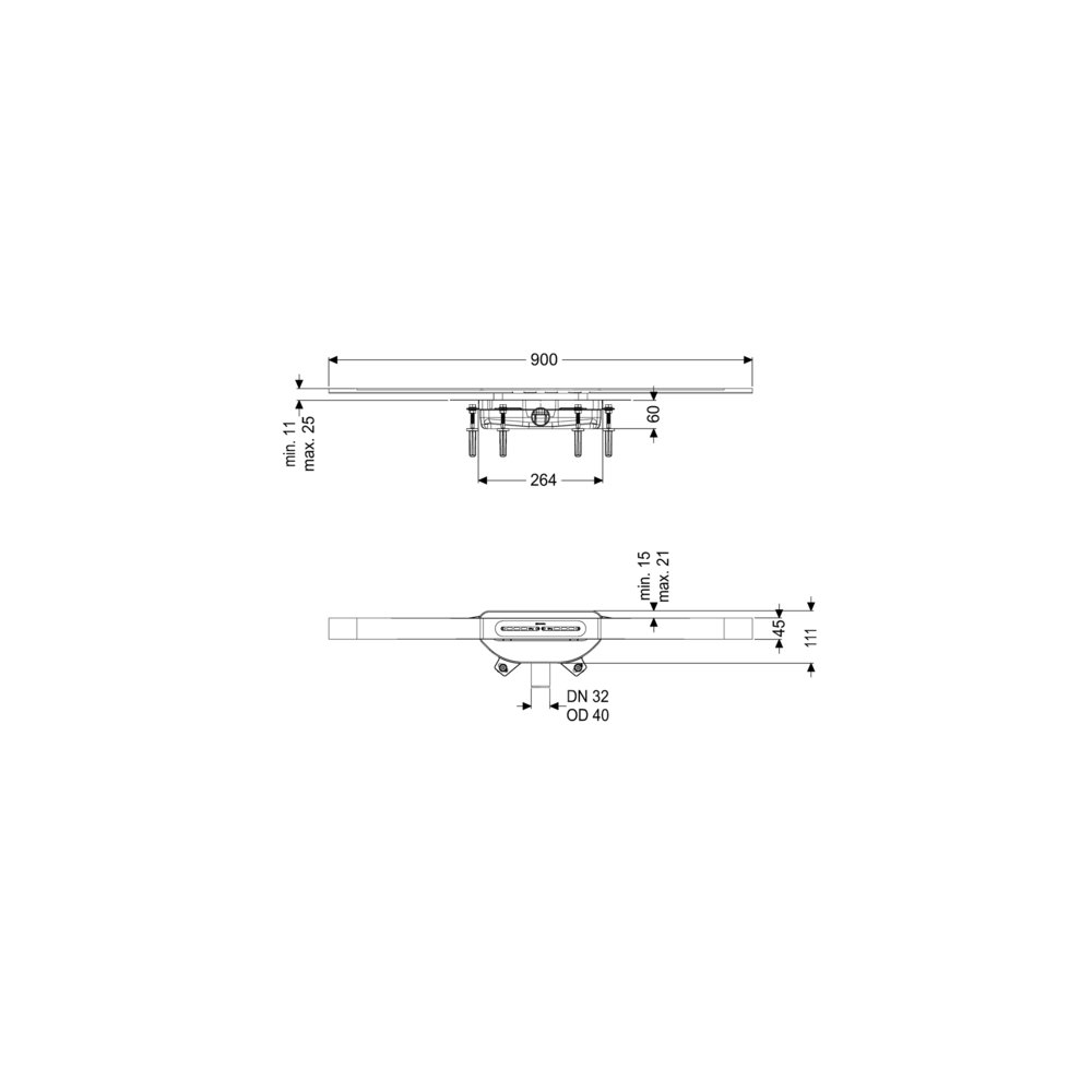 KESSEL Odpływ linio.Linearis Infinity 60, dł. pokrywy 900 mm, odpływ DN 40 mm, powierzchnia Black powierzchnia szczotkowana, typ pokrywy pokrywa ze stali nierdzewnej, syfonem Megastop