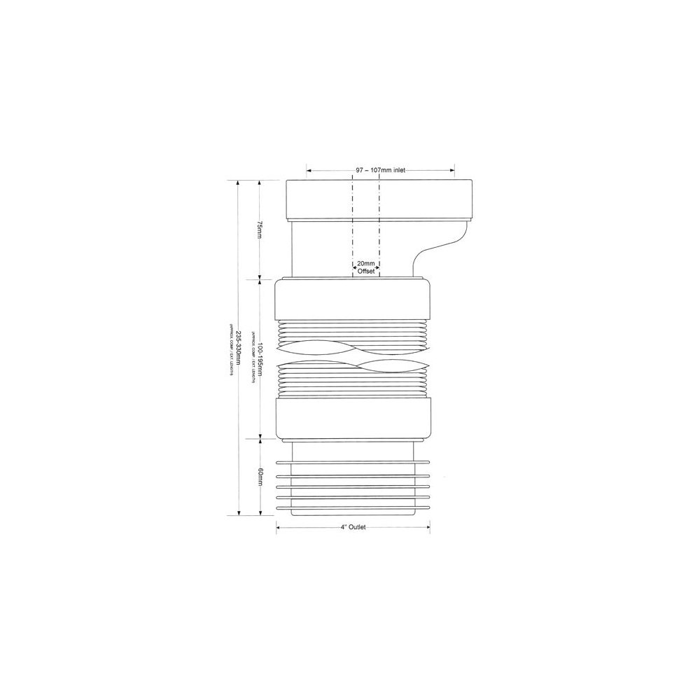 Przyłącze kanalizacyjne harmonijkowe L-235>330mm,wejście 90-110mm,wyjście 110mm z przesunięciem 20mm
