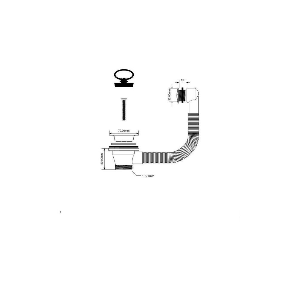 Spust zlewozmywakowy 11/2"x40mm z sitem ze stali nierdzewnej i korkiem gumowym z uchwytem, przelew okrągły