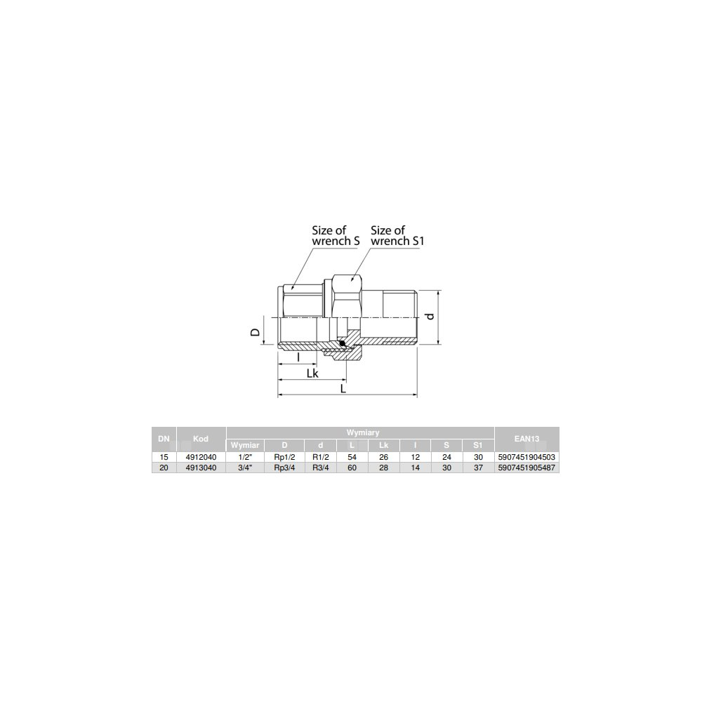 Materiały: korpus, nakrętka, końcówka złączki: mosiądz;