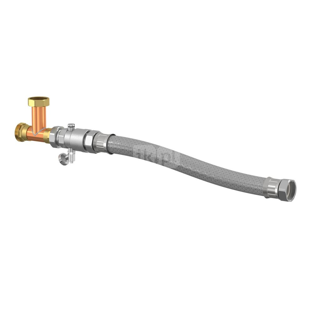 Zestaw przyłączeniowy zawierający trójnik PN10, wąż oraz zawór odcinający i upustowy umożliwiające łatwą instalację naczynia pomocniczego Flamcomat FB.