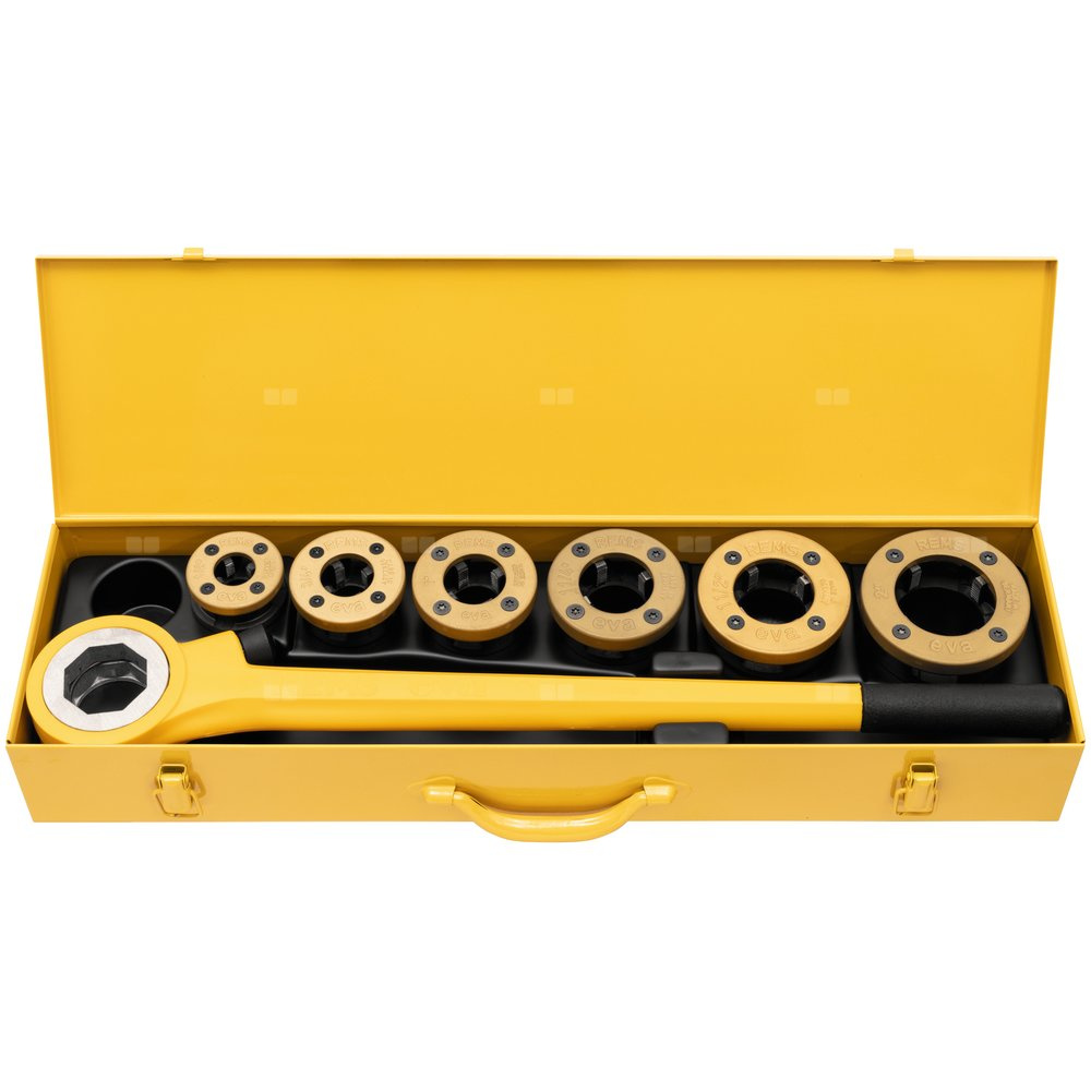 Ręczna gwintownica z szybkozmiennymi głowicami tnącymi.