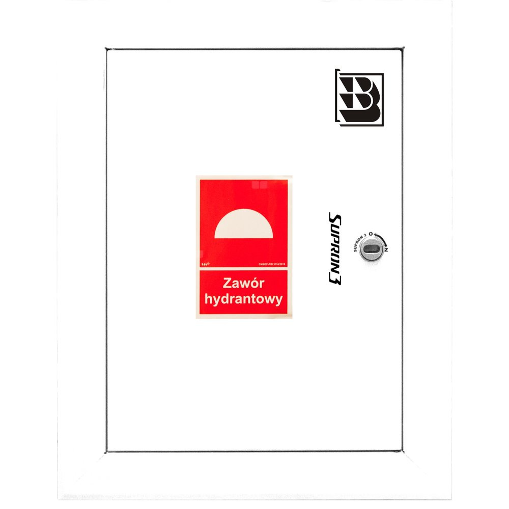Dwa zawory hydrantowe typ ZH-52 wraz z obudową. Obudowa 520 wnękowa. Znak B, zamek OTS, kolor RAL 9003